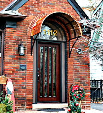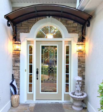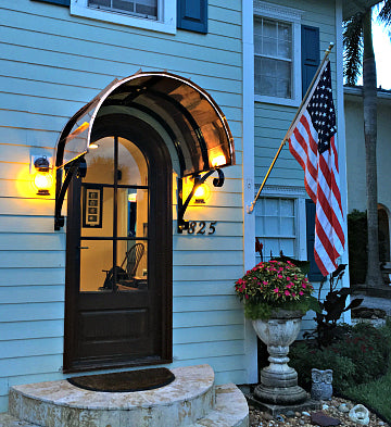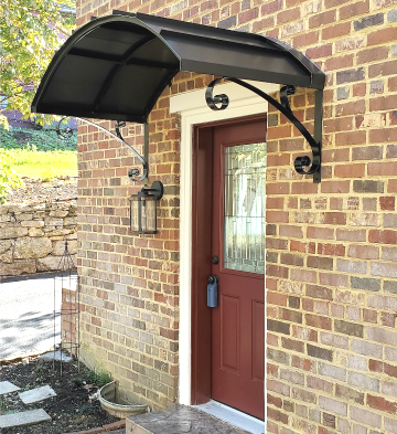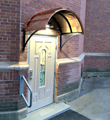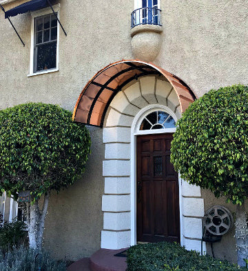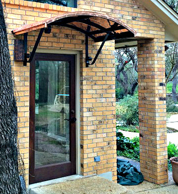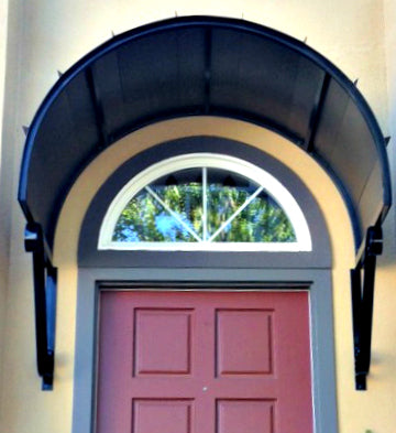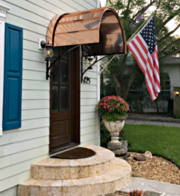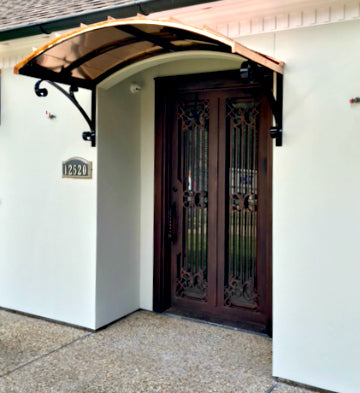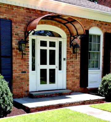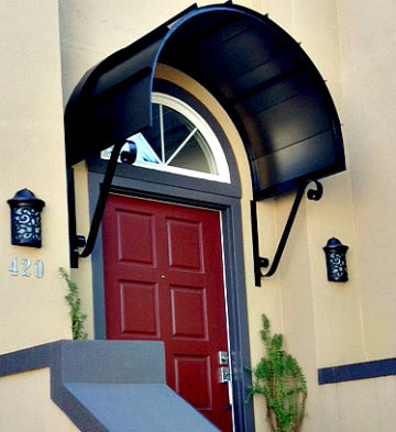 With its distinctive and dramatic curvature, the Eyebrow awning has long been a favorite method for reflecting and accentuating the architectural detail of doors and windows. These awnings are ideal for adding a stylish cover to an already beautiful entrance. We offer the Eyebrow awning in copper or metal with a variety of scroll designs to suit your specific tastes.